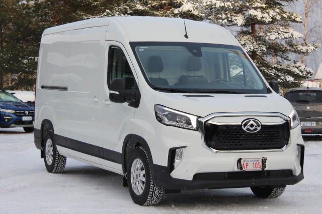Helt elektrisk skåpbil i största paketbilsklassen. Utrymme för för 5 europallar och sittplaser för 3 personer gör denna bil mycket användbar. 236km räckvidd vid blandad körning. Nybilsgarantin är 5 år/ 100 000km och batterigarantin är 8år/160 000 km. Priset på denna långa modell med stora batteriet är 79348€, leveranskostnad 600€, sidodörr vänster 620€, vinterdäck 1990€ = 82558€ inkl moms - 6000€ statligt stöd = 76558 €, momsfritt pris 61740€. Bilen finns även som med hytt och rent chassie för påbyggnad av flak eller skåp. Priset är från 73 000€ med tom ram. De batteripaket som finns just nu är 51,5kwh med 186 km räckvidd, denna modell med 72kwh och 236 km räckvidd och det största på 88,5kwh med 296 km räckvidd.