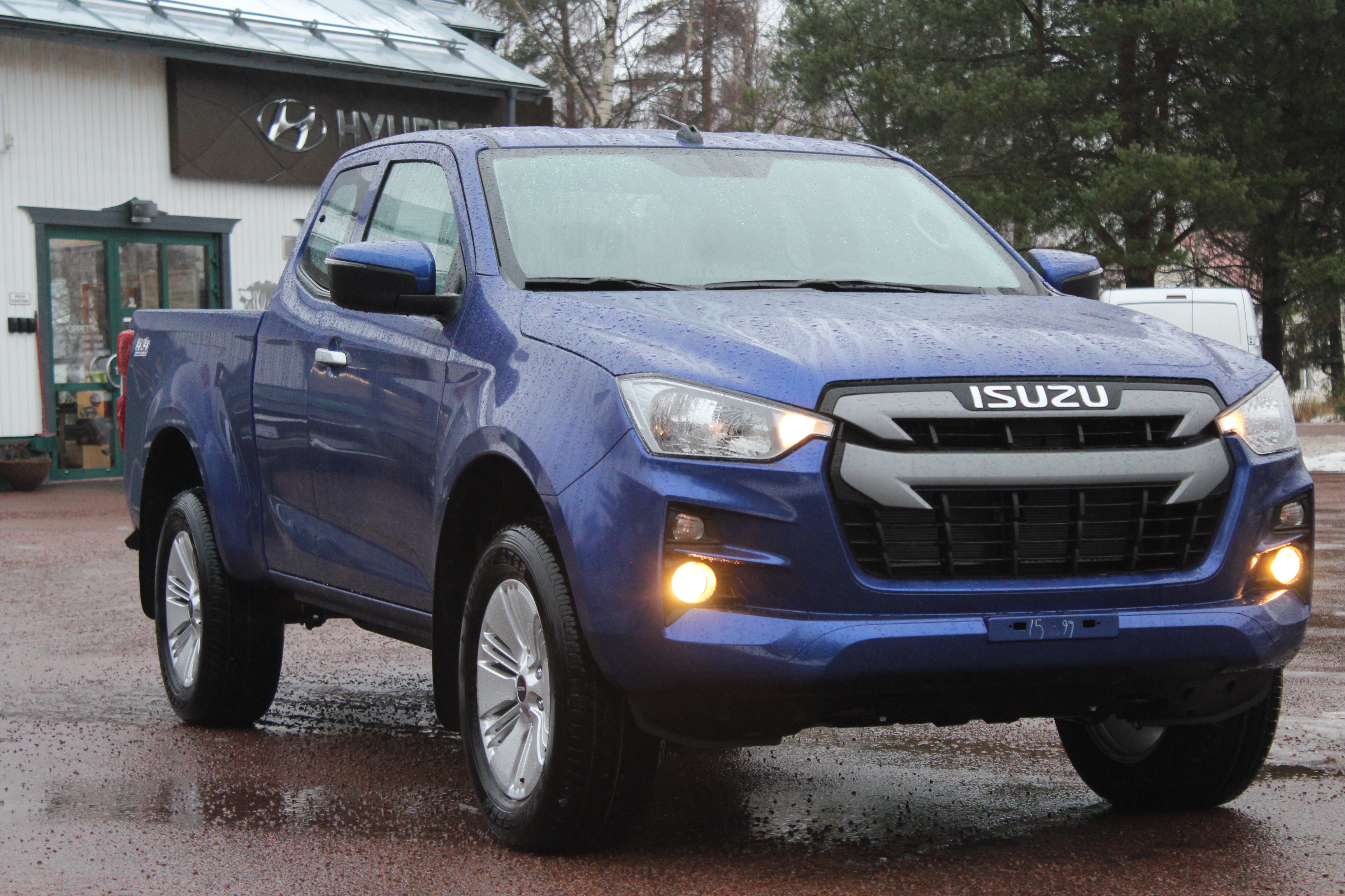 Kraftfull Isuzu Pickup med 3500kg dragvikt, öppningsbara bakdörrar, hög- och lågväxel. Priset är 41990€, leveranskostnad 600€, gummimattor 49€, innerflak 559€, dragkrok 1082€, vinterdäck 17" alu 1990€, metallicfärg 680€ = 46950€ inkl. moms.