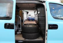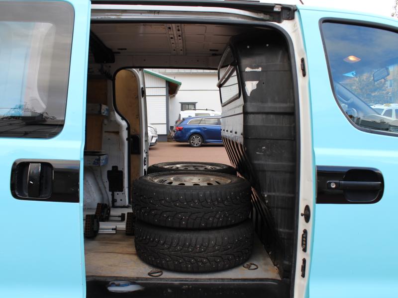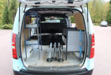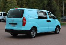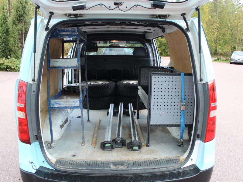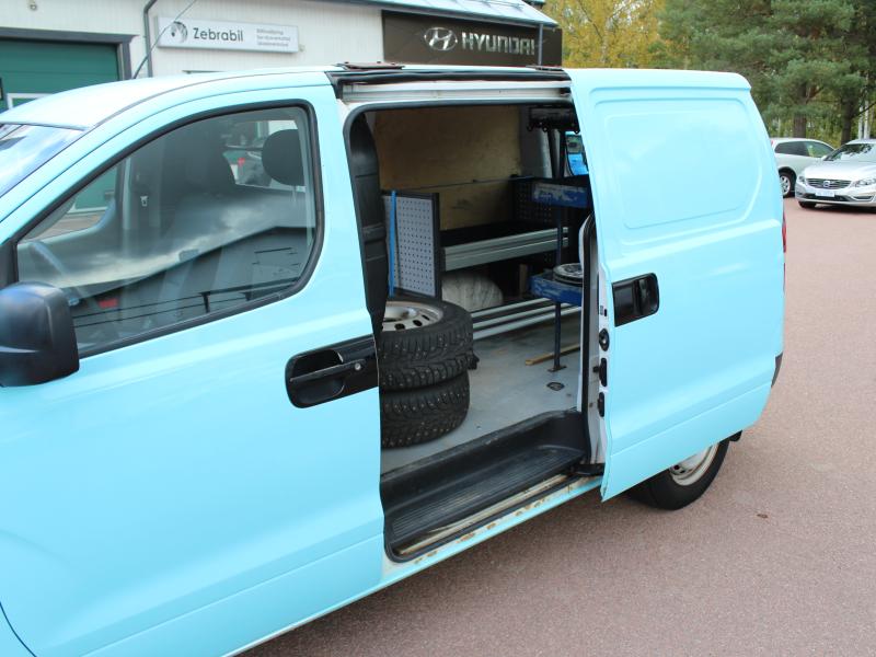 Praktisk skåbil med plats för 3 pers, dubbla sidodörrar, takbågar, dragkrok, sommar- och vinterdäck. Dragvikt 750kg/2300kg.