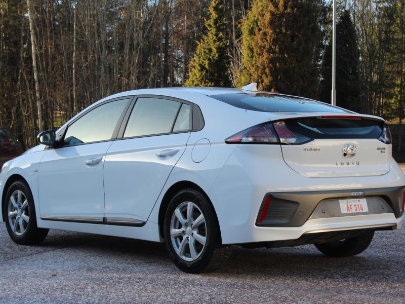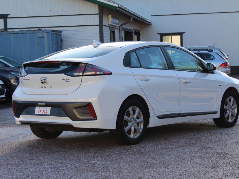 Den senare generationen Ioniq med 38kwh batteri istället för tidigare 28kwh. 312km räckvidd enligt mätaren nu med +3 grader ute vilket är mycket bra för en bil med denna batteristorlek. Sommar- och vinterdäck. Regisreringsdatum 12/2019.