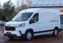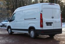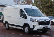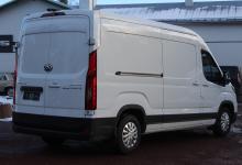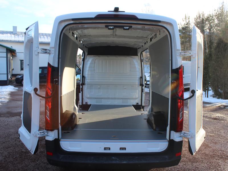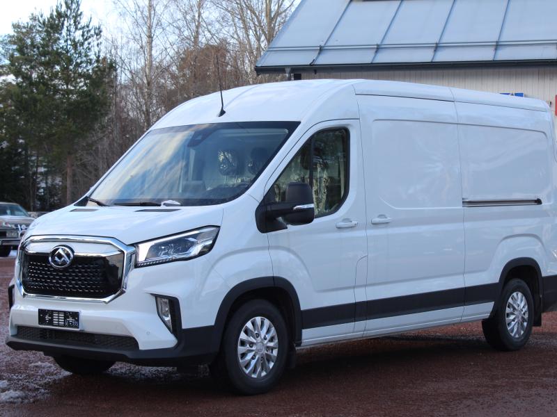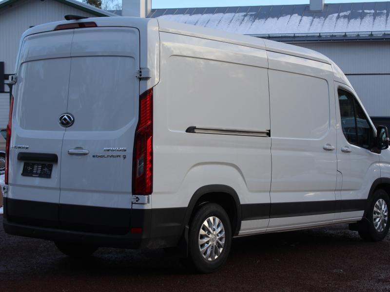 Stor skåpbil med 11m3 skåp, dubbla sidodörrar i skåpet, 3 sitsar, backkamera. Klassledande räckvidd ger sommartid 350km+ räckvidd i stan och ca. 300km landsvägeskörning. 80600€, leveranskostnad 600€, sidodörr vänster 620€, vinterdäck 1990€ - 6000€ anskaffningsstöd = 77810 € / 62750€ utan moms.