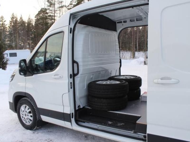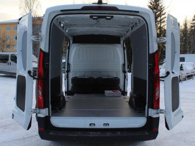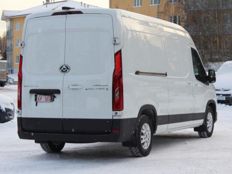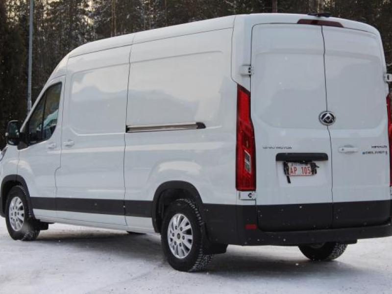 Helt elektrisk skåpbil i största paketbilsklassen. Utrymme för för 5 europallar och sittplaser för 3 personer gör denna bil mycket användbar. 236km räckvidd vid blandad körning. Nybilsgarantin är 5 år/ 100 000km och batterigarantin är 8år/160 000 km. Priset på denna långa modell med stora batteriet är 79348€, leveranskostnad 600€, sidodörr vänster 620€, vinterdäck 1990€ = 82558€ inkl moms - 6000€ statligt stöd = 76558 €, momsfritt pris 61740€. Bilen finns även som med hytt och rent chassie för påbyggnad av flak eller skåp. Priset är från 73 000€ med tom ram. De batteripaket som finns just nu är 51,5kwh med 186 km räckvidd, denna modell med 72kwh och 236 km räckvidd och det största på 88,5kwh med 296 km räckvidd.